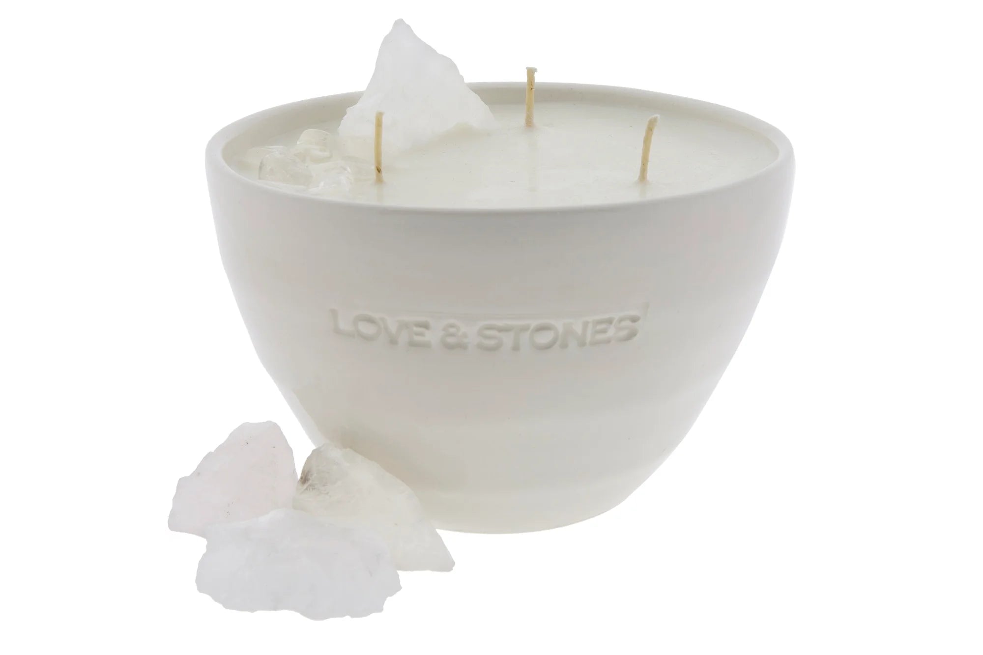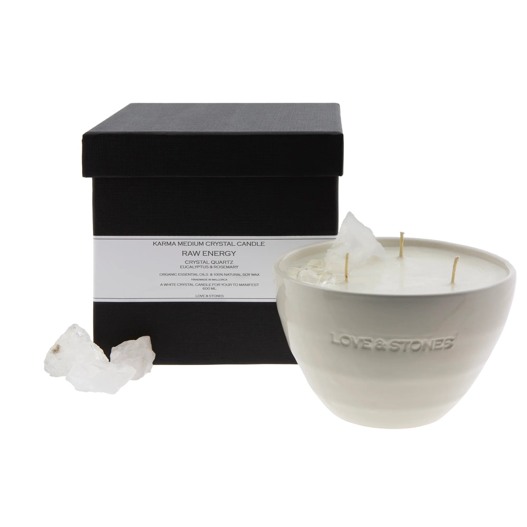 Love & Stones - Raw Energy - Crystal Quartz Infused Scented Medium White Ceramic Candle