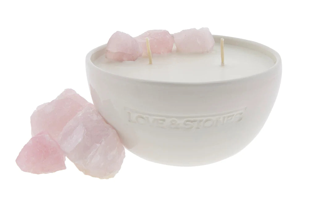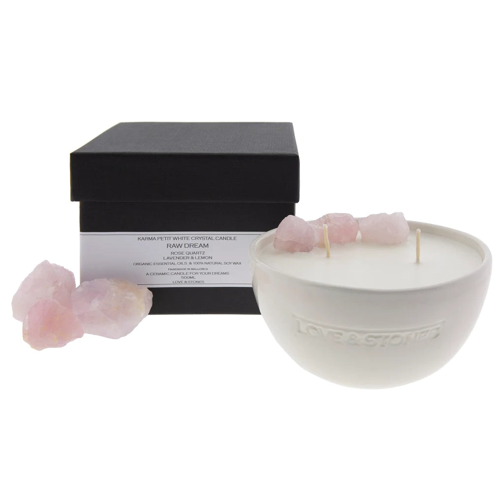 Love & Stones - Raw Dream - Rose Quartz Infused Scented Petit White Ceramic Candle