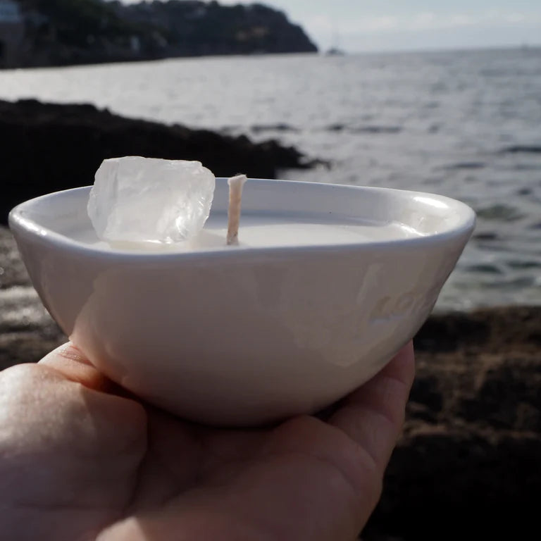 Love & Stones - Raw Energy - Crystal Quartz Infused Scented Mini White Ceramic Candle