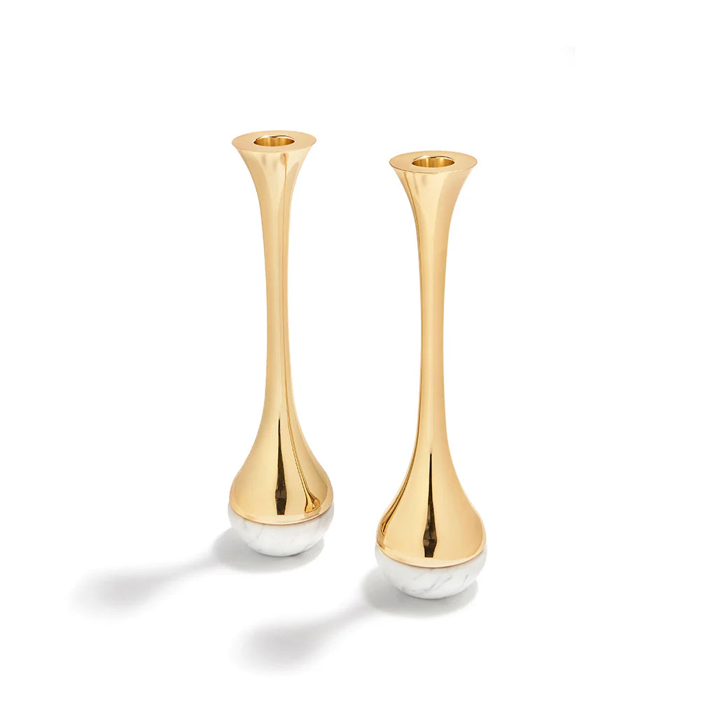 Anna New York - Coluna Dual Candleholders Marble & Gold, Set of 2