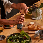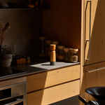 Inspired by grain mills, our Stone Pepper Mill produces maximum output by utilizing a unique cut stone pattern to grind pepper. The rough granite stone contrasts the soft ash wood form, creating a balanced, tactile design. With use, the mill stones become smoother due to the natural oils released by the peppercorns creating a product that only improves with age.