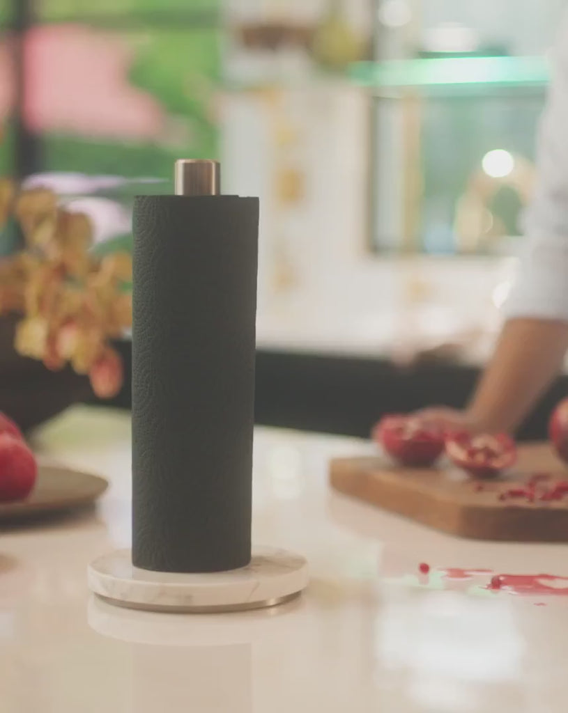 Curio Homegoods - Obscura Paper Towel Holder plus Spray Bottle - Steel/White Marble