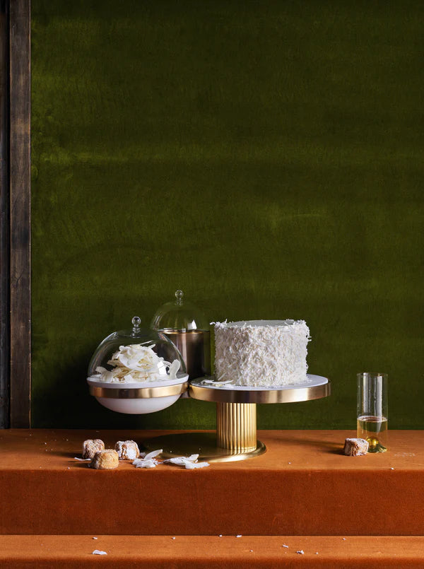 Designed with brilliant designer Kelly Behun, a collection of innovative entertaining objects within the L’OBJET world of fine craftsmanship and luxurious materials. This architectural server is crafted from gold-plated brass, porcelain and glass; it literally and figuratively elevates the things you love to eat and share.