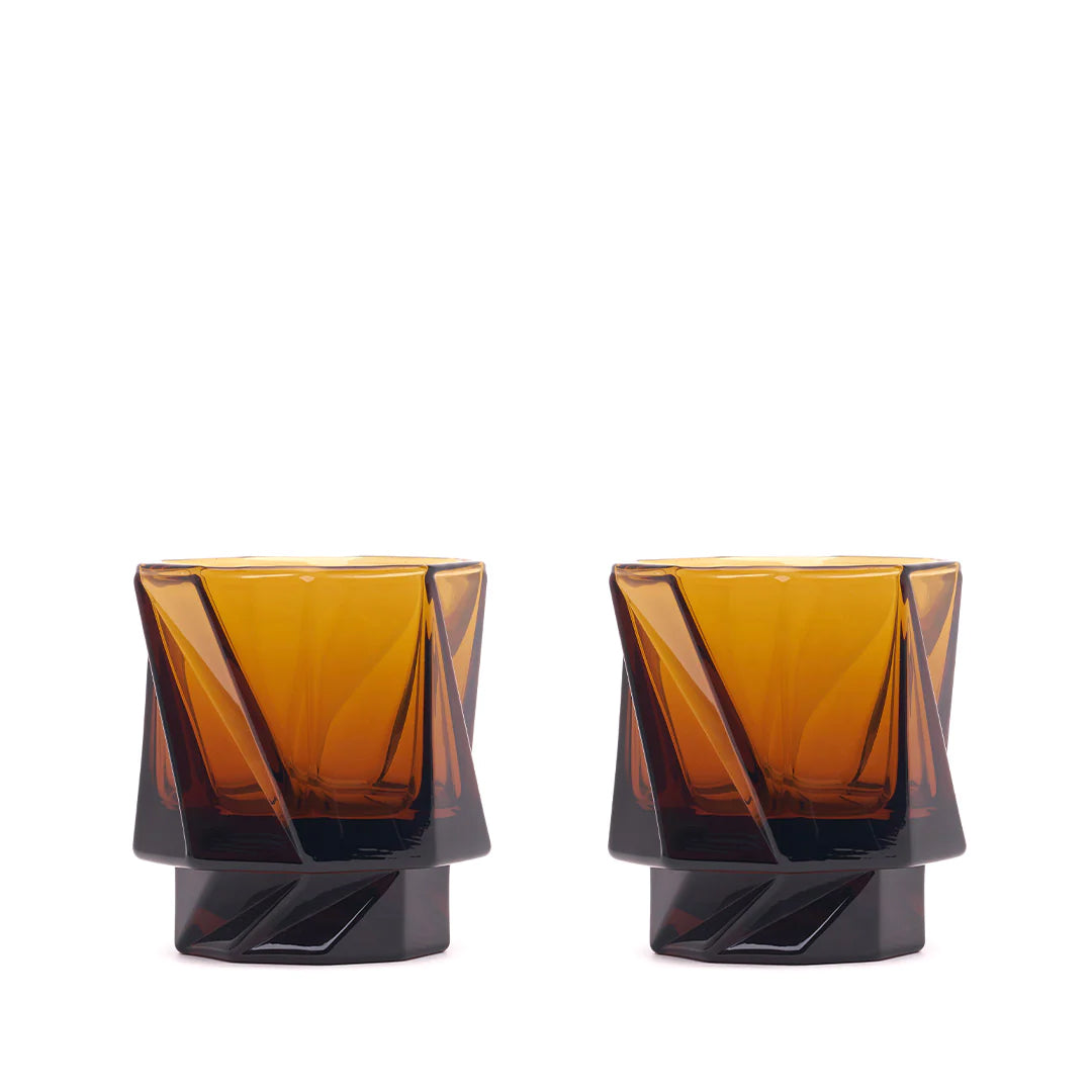 Max ID Glassware - “THE SEXTON” GHOST TUMBLER PAIR - Dark Amber