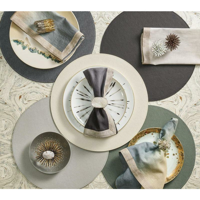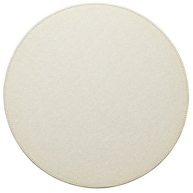 The round Shagreen Placemat features a sophisticated faux granular hide. A beautiful replica of the traditional rough pattern, this round placemat is sleek and elegant. Perfect for everyday dining or for a lavish dinner party, these round placemats are easy to care for; simply wipe down before storing.