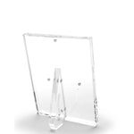 Details: clear lucite, beveled front, built in magnets for easy assembly, kickstand orients the frame vertically or horizontally.