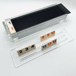 Classic Rummy tile game with a modern design. Comes with 4 Racks and 106 Tiles including 2 Jokers.