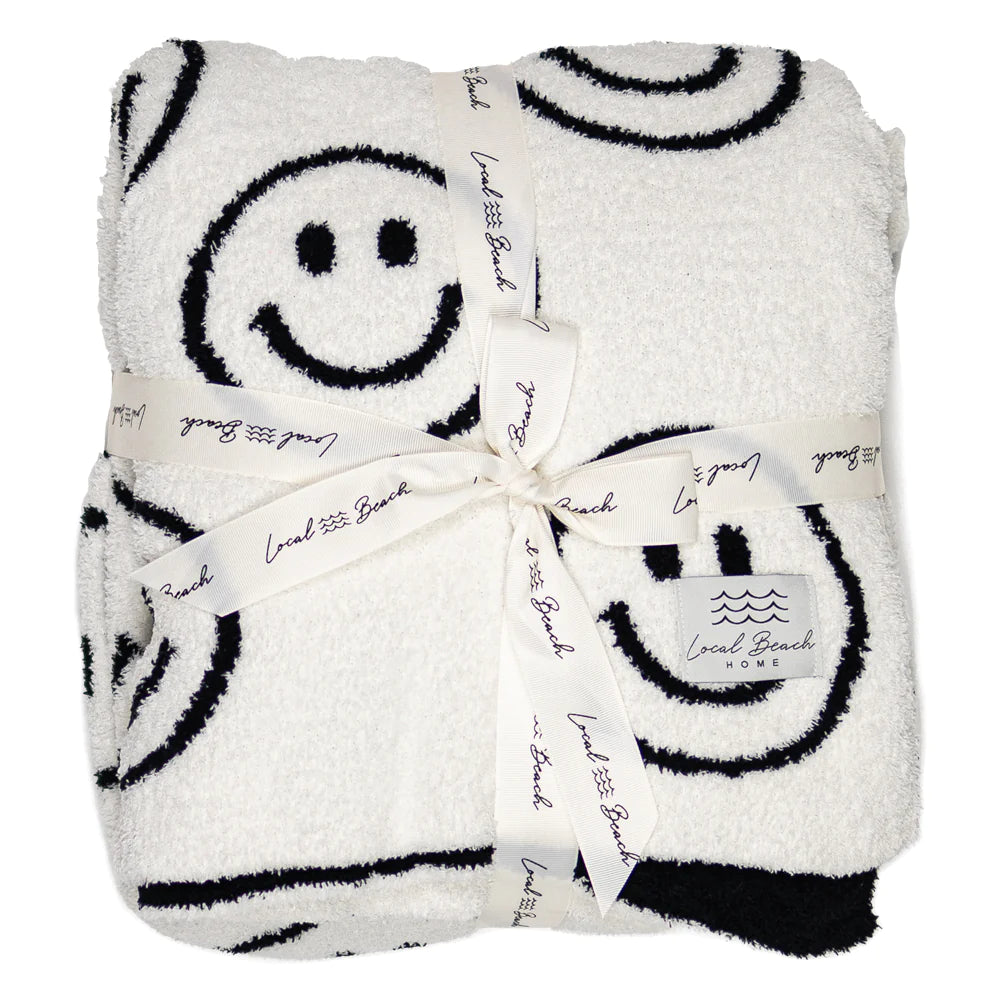 Local Beach - Smiley Luxe Home Blanket - Black/Cream