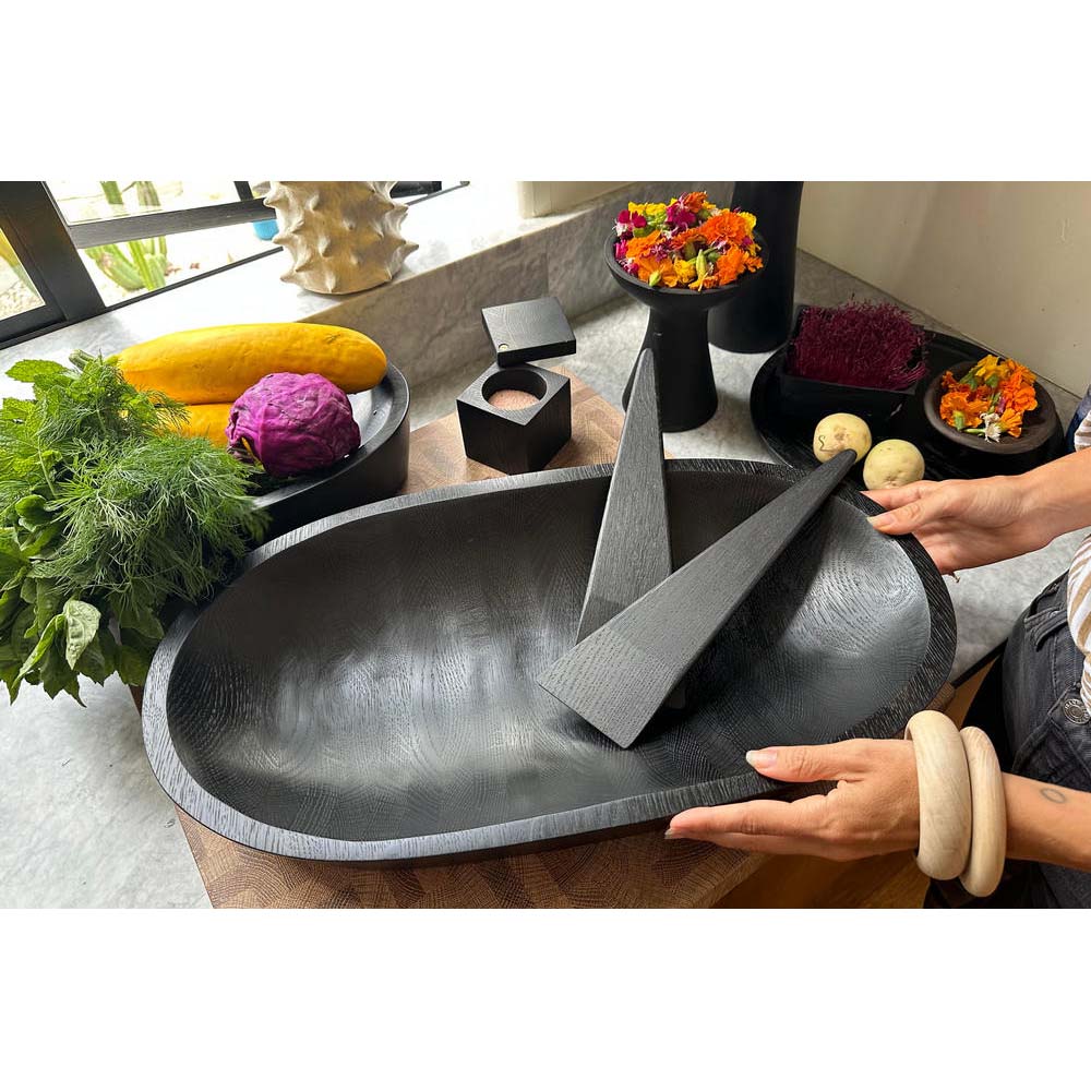 The Wooden Palate - Large Hand Carved Oval Bowl in Ebonized Oak. 11 x 22"