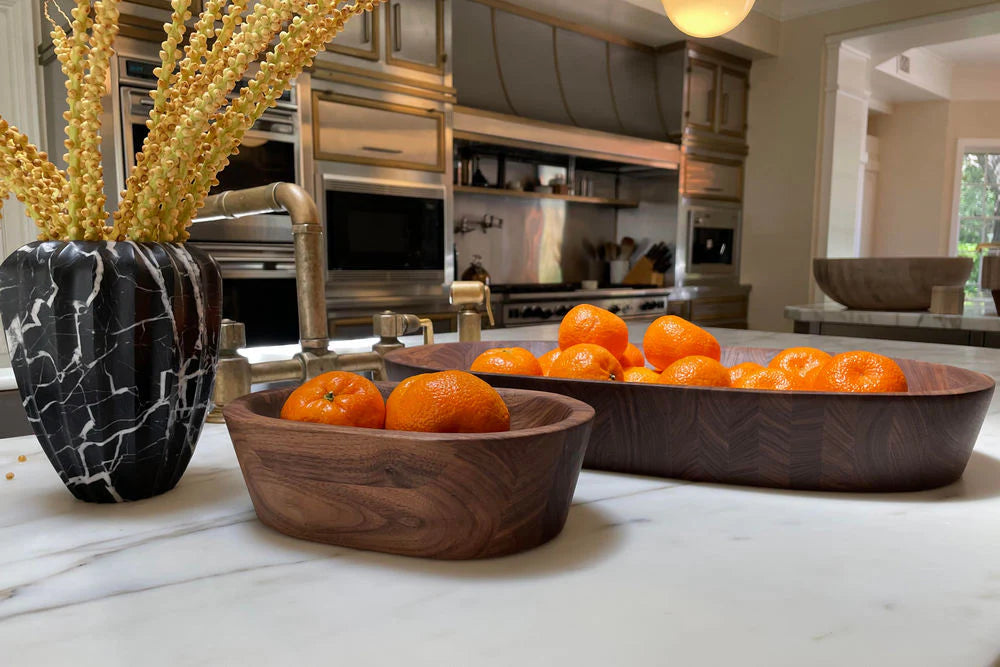 The Wooden Palate - Large Hand Carved Oval Bowl in Walnut. 11 x 22"