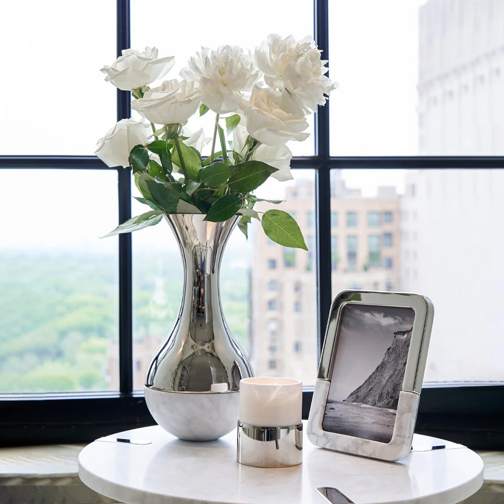 Anna New York - Coluna Dual Vase, Marble & Silver