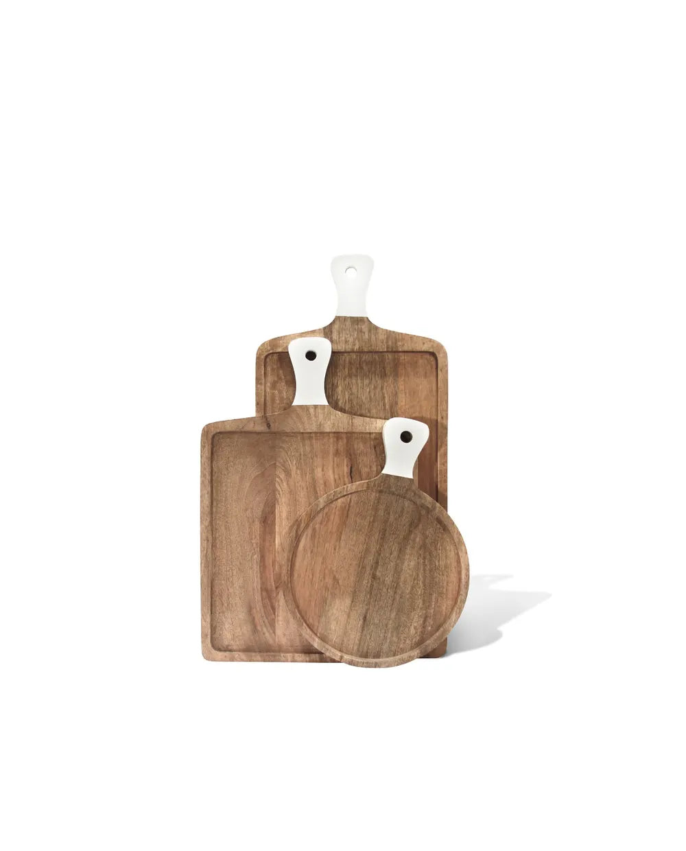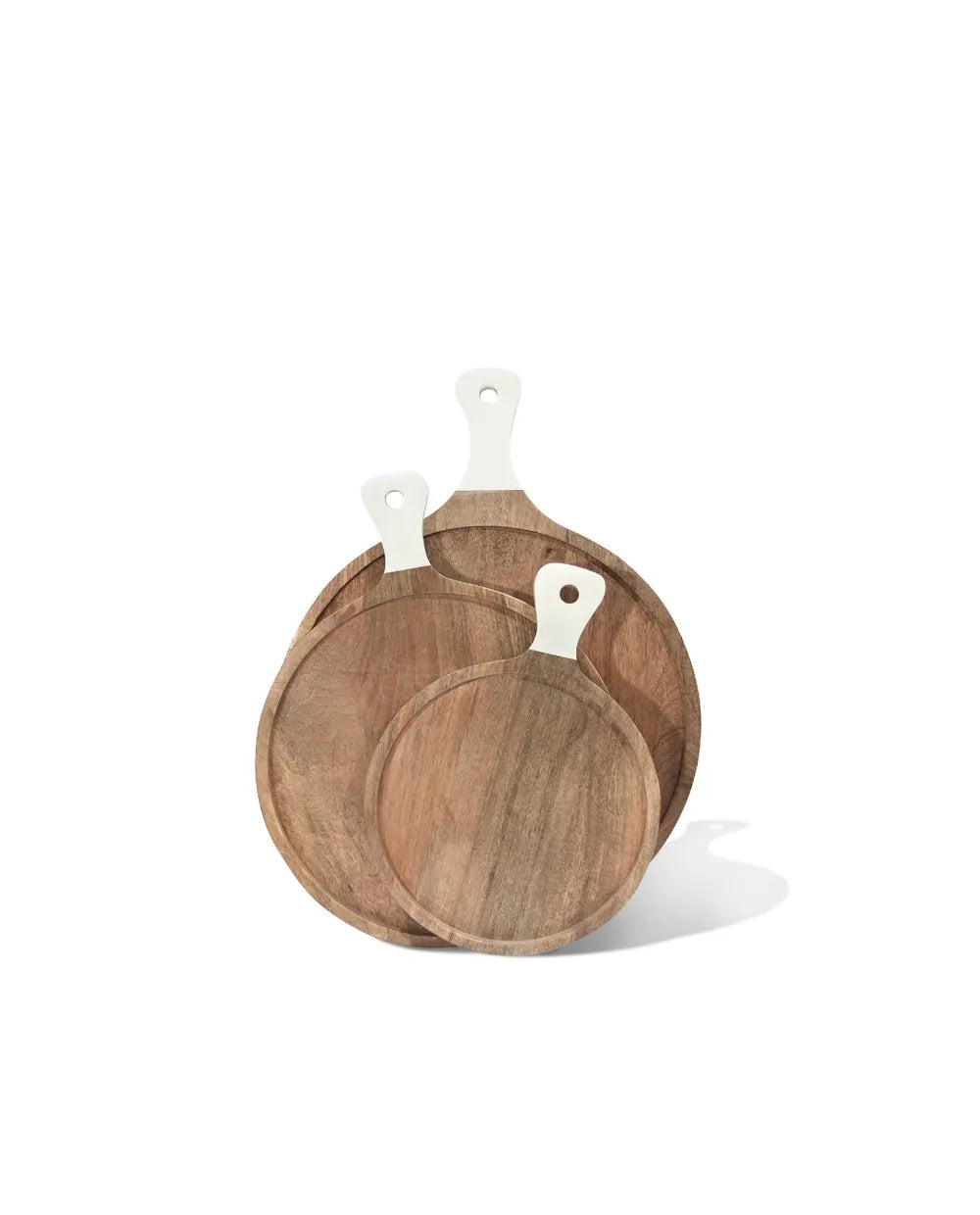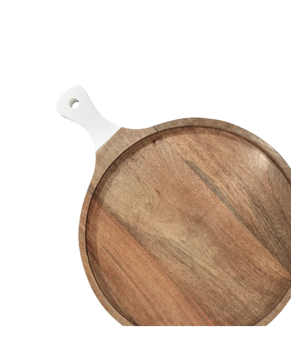 Montes Doggett - Acacia Round Cutting Board with White Handle - Large